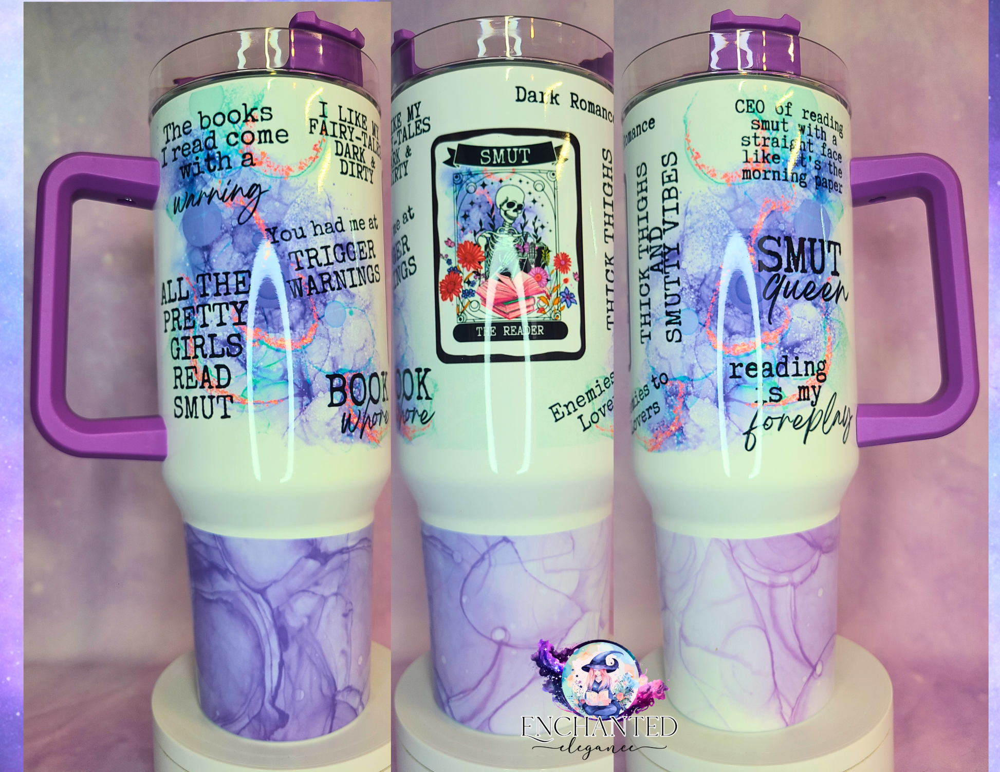 For the bookworm who loves their romance dark and dirty—this 40oz tumbler is your new must-have. Whether you're sipping hot tea after a plot twist or chugging ice water to survive a book hangover, it’s got you covered.